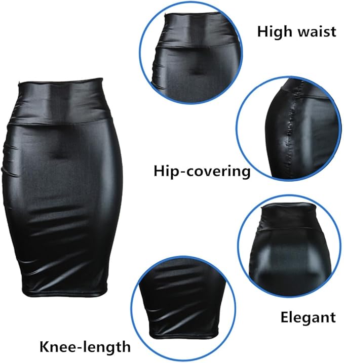 [Getrays] レディース PU スカート、ハイウエスト ボディコン ペンシル ミディ スカート、ブラック フェイクレザー ラップ オフィス スカート、伸縮性のあるカジュアル スリム ヒップラップ ペンシル ドレス