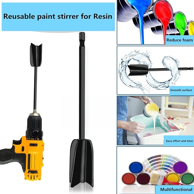 【巧妙な設計】-私たちのカラーミキサーには4つのプロペラがあり、急速に完全に攪拌し、エポキシ樹脂を簡単に混合し、混合物中の泡を最大限に減らし、時間を節約し、作業効率を高めることができます。