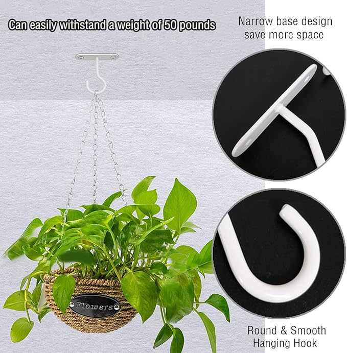 【あなたは何を得ることができますか】⭐ 天井植物フック3パック、取り付けネジ6本、壁栓6本が届きます。屋内外での使用に適しており、天井、壁、デッキ、フェンス、ドアなどに取り付けることができます。自宅、ガーデン、ガレージ、ベランダを美しくし、場所を彩ります。