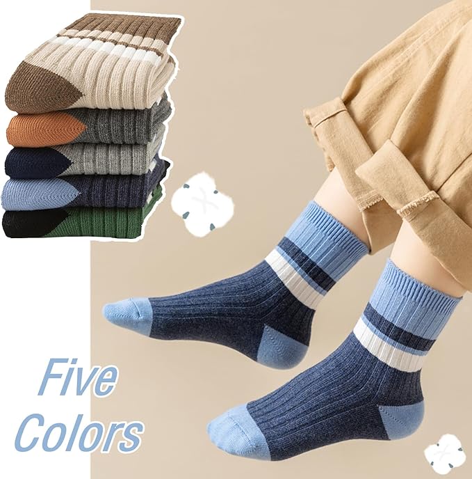 [Getrays] 子供靴下 キッズ ソックス 5足組、おしゃれ ボーイズ ストライプ 綿 クルーソックス、柔らかい 伸縮性 通気 男の子 くつした おしゃれ 通学 通園 スポーツソックス 子供用 幼児用 靴下 3-9歳