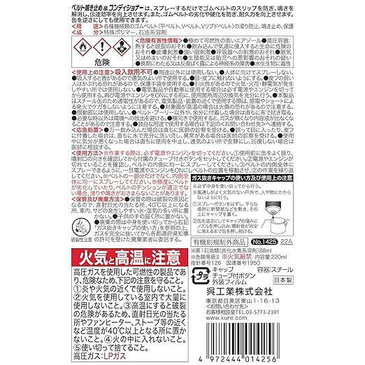 KURE(呉工業) ベルト鳴き止め アンド コンディショナー 220ml ベルト滑り止め・鳴き止め剤 1425