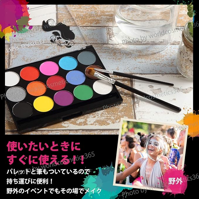 フェイスペイント 15色 【国内検査済】 安全 ボディペイント ベリーペイント アートメイク アイシャドウ アイライン チーク メイクアップ 化粧 コスプレ 小道具 メイク コスメ 仮装 安全 絵具 ハロウィン Halloween クリスマス