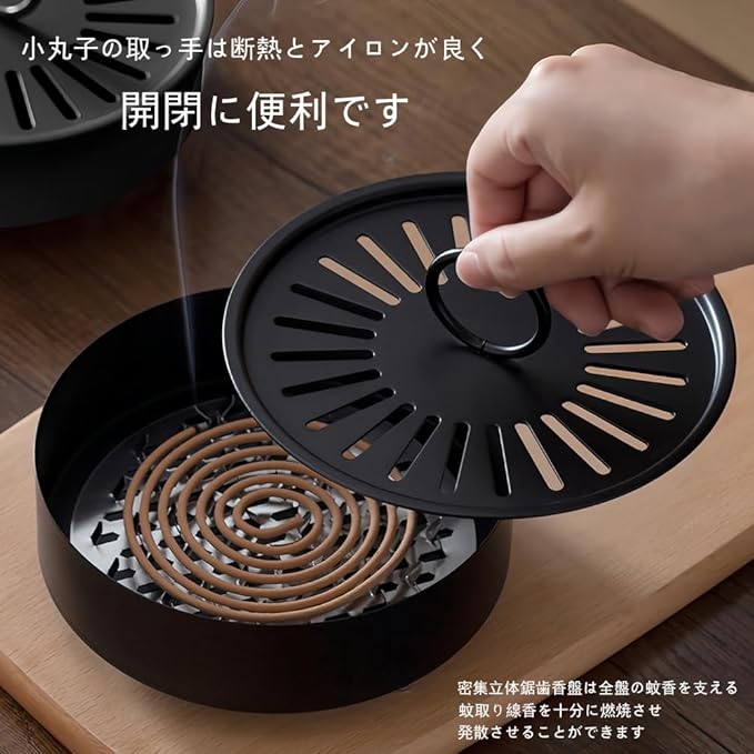 【分離デザイン】:蚊取り線香 ケース分体デザインで、掃除が便利で、層を重ねて、空間を占有せず、メンテナンスが楽です。 小丸子取っ手は断熱性に良く、やけど防止で、開閉に便利です。