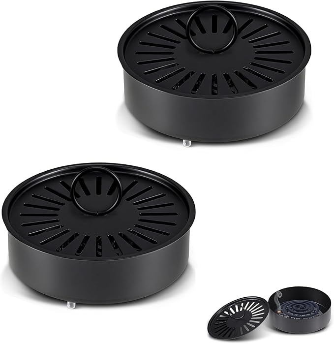 【商品情報】:蚊取り線香ホルダーサイズ:15cm 15cm 5.5cm(大きいサイズ、市販のほぼ全ての蚊取り線香サイズに適合)、材質:炭素鋼、色:黒、包装内容:蚊取り線香ホルダー 1個(蓋付き)。
