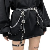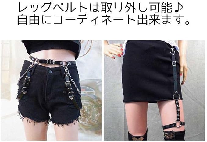[paniki] ベルト ゴシックベルト レッグハーネス ロリータ チェーン 病み 地雷 パンク PU かっこいい ブラック フリーサイズ