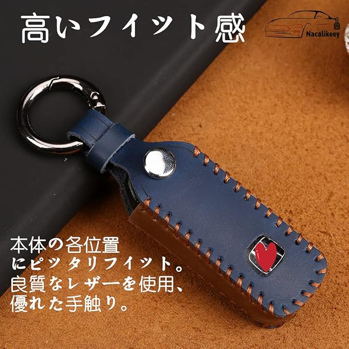 N-BOXキーケース HONDA N-ONE N-ワゴン レザー スマートキー ケース キー カバー スタイリッシュ 汚れ 滑り 傷 防止 ホンダ N-VANン キーレ (4ボタン, 青い)