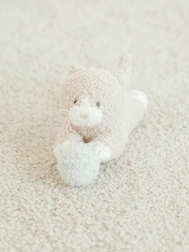 【ボールで遊ぶ猫をモチーフにしたベビモコ素材のBABYラトル】