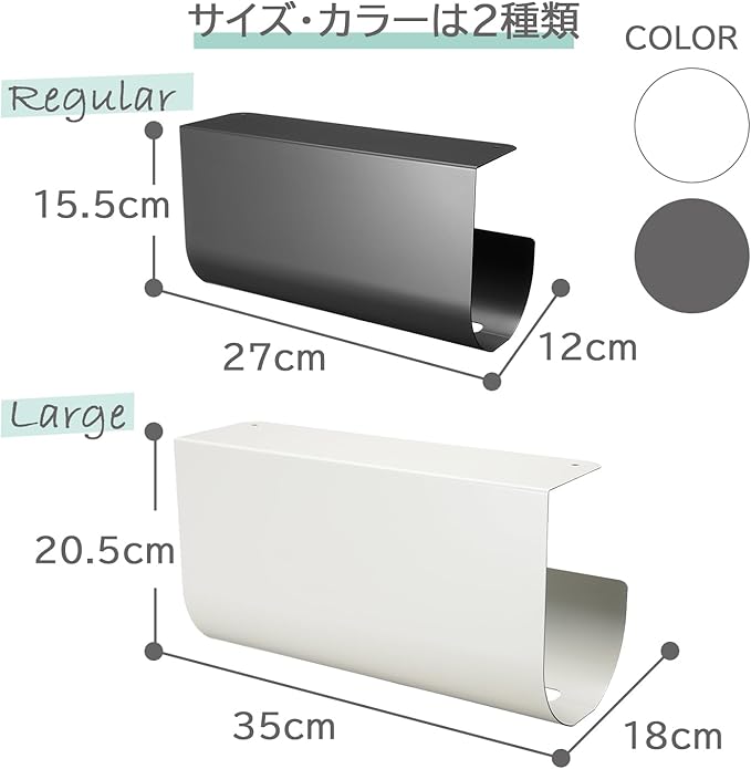 キッチンペーパーはロールタイプで直径12㎝ 幅24.5㎝以内のものをご使用ください。棚板の厚み2.5cm以下、後ろに12cm以上の空きのある場所に取り付けてください。最大積載重量:1㎏
