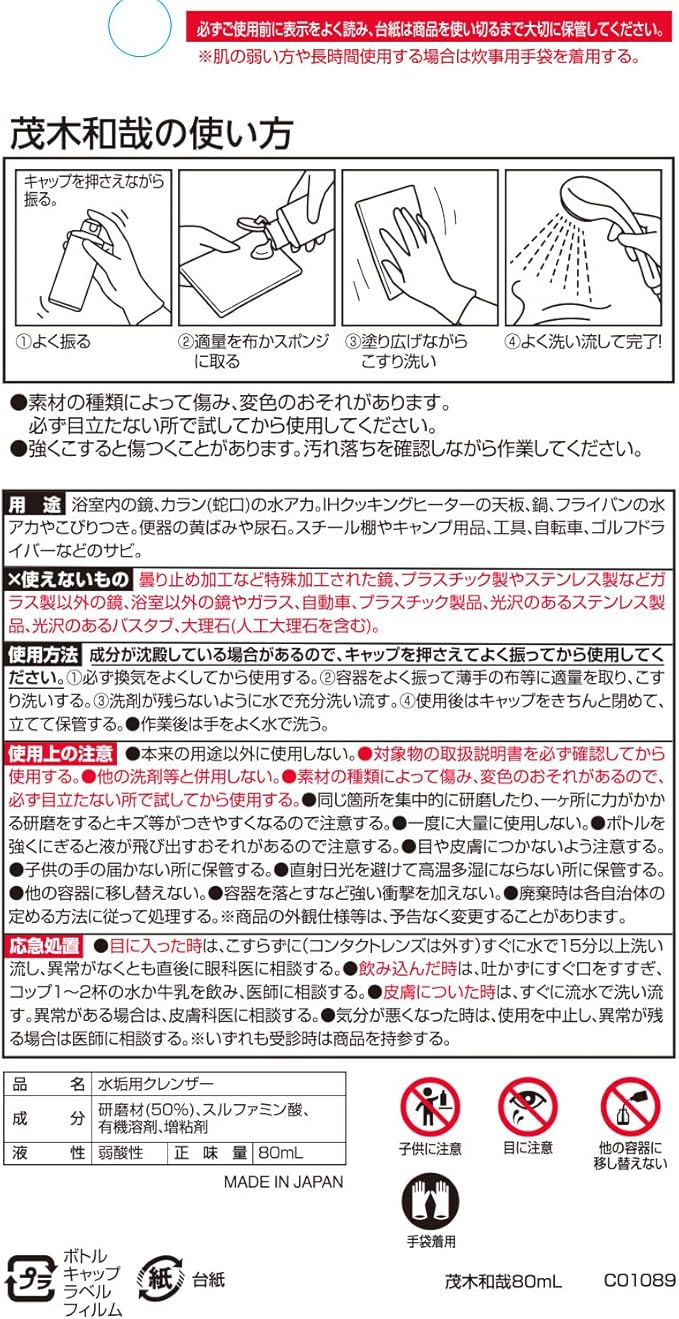 茂木和哉 水アカ用クレンザー 80ml プロ仕様 シリーズ代表作のお試しサイズ