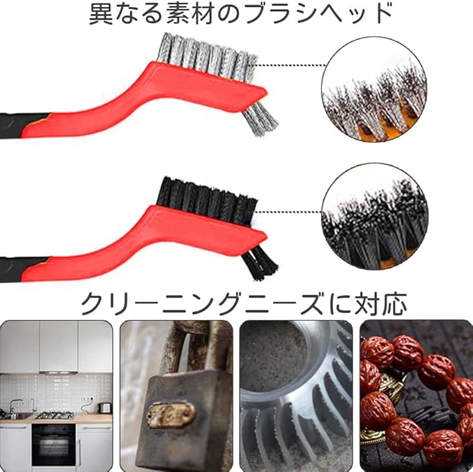 【3本セット】プラスチックワイヤー付きブラシ2本、ステンレスワイヤー付きブラシ1本 3本セット。様々なクリーニングに対応。