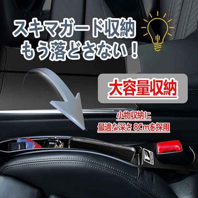 ✅【大容量収納&落下防止】 座席の隙間に落ちた鍵や携帯電話を探し回る手間を解消!8cmの深さを持つ広めの収納スペースで、鍵、携帯電話、財布、イヤフォンなど、日常的に使うアイテムをしっかり収納できます。他の隙間クッションより広いスペースを提供し、車内をスッキリと整理整頓。座席の隙間を有効活用し、落下防止機能で安全で快適なドライブをサポートします。【適用車種】レクサス F-Sportなどに対応。
