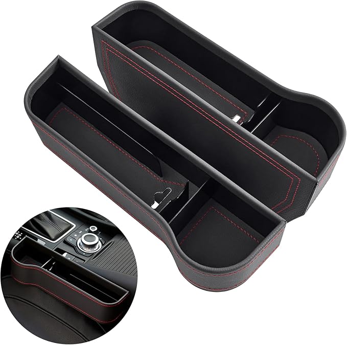 【2個セット&大容量収納】 運転席用と助手席用の2個セットです 。仕切り機能で小物を分類整理でき 、カップホルダー・スマートフォン ・ヘッドフォン ・サングラス ・財布 ・鍵 ・カード など、さまざまなアイテムを収納可能。車内がすっきり片付き、収納場所に困っている方、シート間に物を落としがちな方に特におすすめです 。