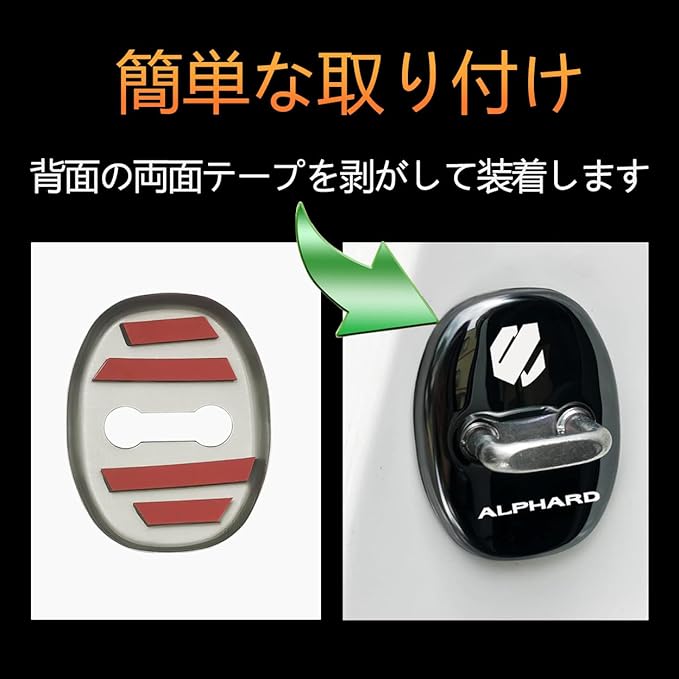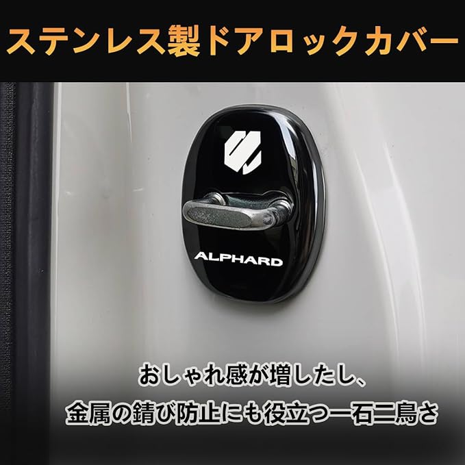 トヨタに適用 新型アルファード(ALPHARD) AGH40W AGH45W 40系(2023年6月~) に適合 ドアストライカーカバー専用 ドアロックカバー ステンレスカバー 簡単取り付け メタリック 4個セット