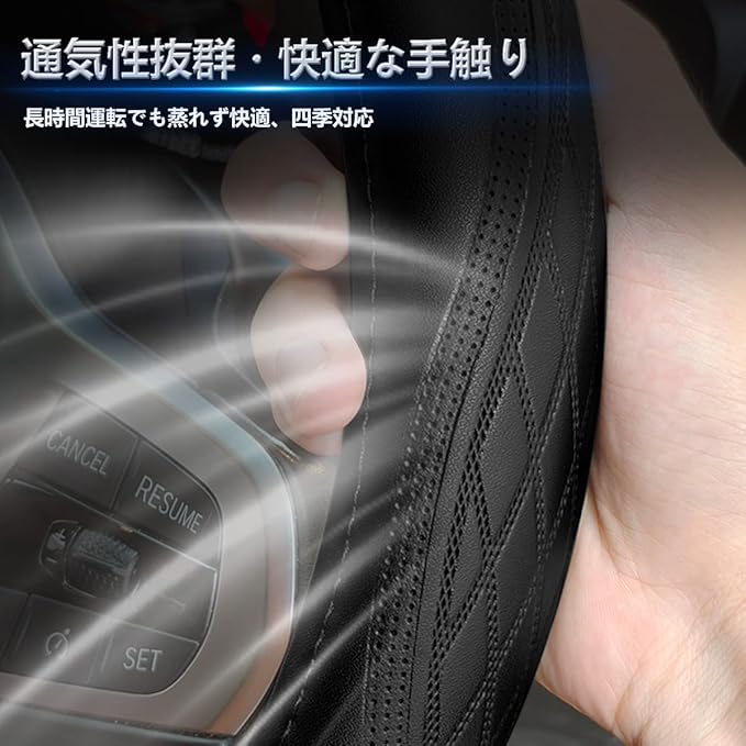 【通気性抜群・オールシーズン快適】通気性に優れ、長時間運転でも手が蒸れない快適さ。柔らかく手に馴染む本革で、夏は涼しく冬は冷たくなく、春夏秋冬どの季節でも快適に使用可能。ハンドルカバーとしても最適で、毎日運転が楽しくなる質感です。