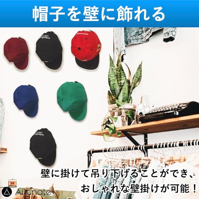 ✅【帽子を壁に飾れる】帽子やキャップを壁に掛けて吊り下げることができ、壁掛けラックとして収納用途で使うことやディスプレイとしても飾ることができます。