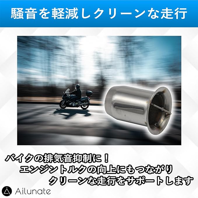 Ailunate インナーサイレンサー バイク バッフル マフラー 触媒 消音 型 汎用 音量 調整 消音器 騒音対策 ステンレス 差し込み (50.8mm用)