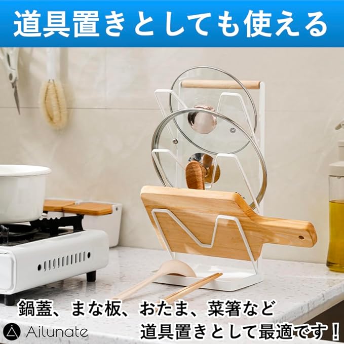Ailunate 鍋蓋スタンド 鍋ぶた なべぶた スタンド ホルダー 蓋立て お玉立て おたま 鍋蓋置き 鍋ふた 蓋置き まな板 収納 自立 3段