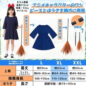[COZENRE] 魔女キキ コスプレ 子供 ハロウィン 仮装【リボンカチューシャ+ワンピース+バッグ+ほうき+ハロウィンシール*3】7点セット 衣装 cosplay コスチューム レディース 子供コスプレ 女の子 萌え 可愛い 魔女の宅配屋さん 舞台演出服 文化祭 学園祭 子供用