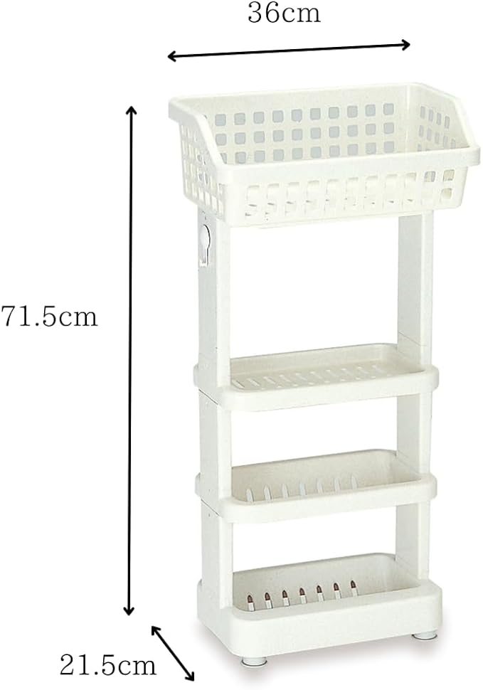 伊勢藤(ISETO) 浴室用ラック 湯楽(4段) ホワイト 幅36.0 奥行21.5 高さ71.5cm 日本製 大型バスケット付 フック付 吸盤 置き型 コーナー 吊り下げ 高さ調節可能 I-225