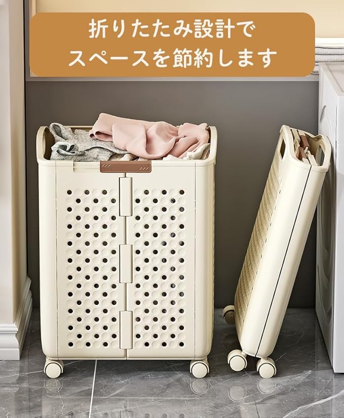 このランドリーバスケットは、折りたたみ式でキャスター付き、一人暮らしから大家族まで対応可能な3サイズ展開です。 高品質PP素材を使用し、耐久性が高く変形しにくい設計。スリムで大容量なので、部屋のスペースを有効に使いながら洗濯物をまとめて収納できます。 通気性のあるメッシュデザインで湿気を防ぎ、清潔に保てます。キャスターと取っ手付きで、洗濯物の移動も簡単。 一人暮らしでも、家族全員分でも、快適に使えるランドリーバスケットです。
