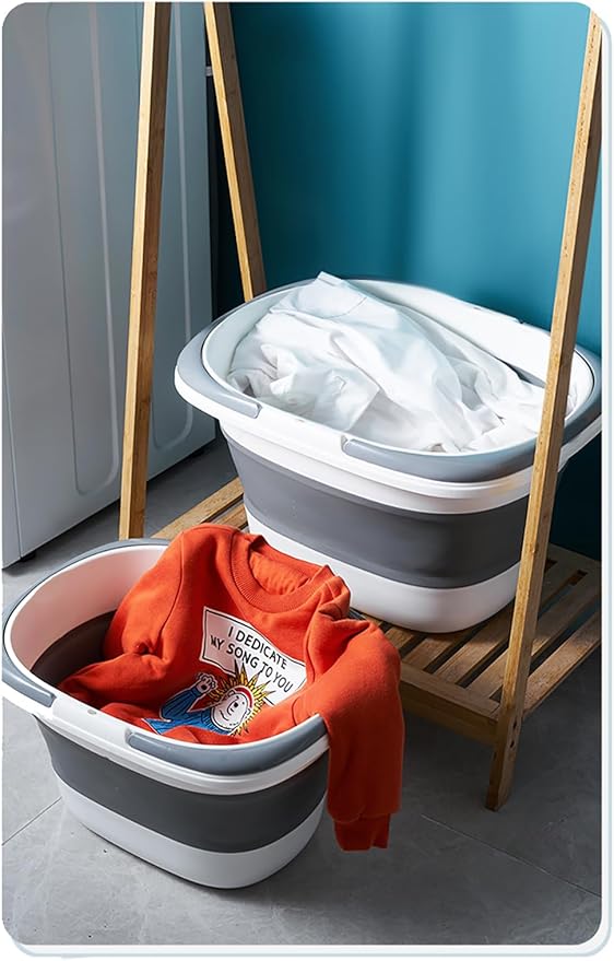 折りたたみ バケツ 16L/28L 大容量 おしゃれ キャンプ 洗濯 洗車 足湯 釣り (灰, 28L)