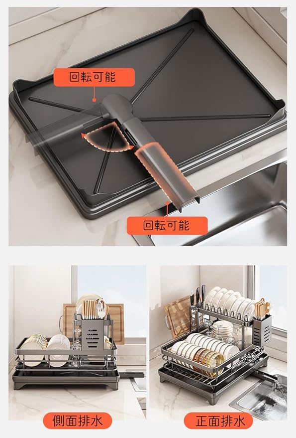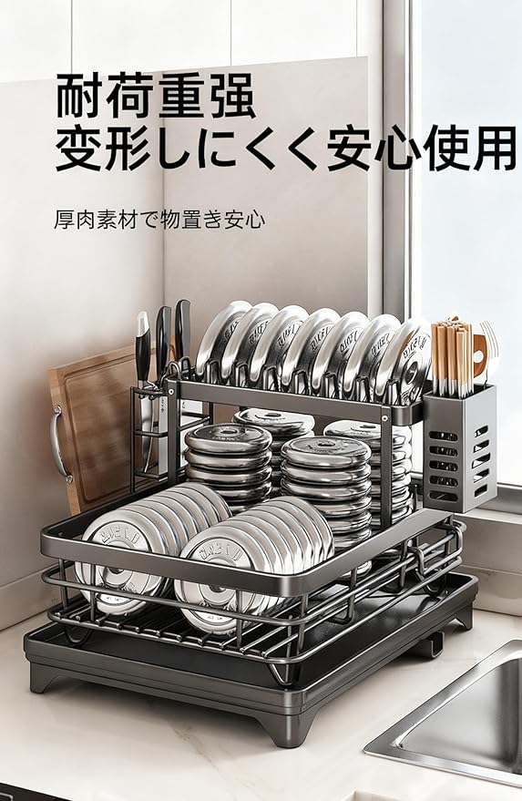大容量設計: 41 29 23cmの2段式構造で、たくさんの食器を効率的に収納・乾燥できます