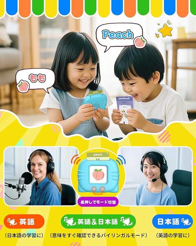 幼児 英語 カード 音声 日本語 フラッシュカード 子供 ことば おもちゃ 3歳 4歳 5歳 6歳 男の子 女の子 プレゼント 単語 読み上げマシン flash cards 112枚224語