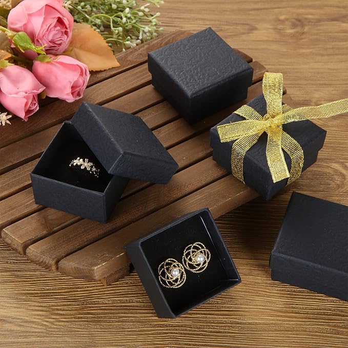 RILIHII 【50個セット】 ギフトボックス 指輪ケース ギフトボックス ラッピング 正方形 5 5 3cm リング アクセサリー ジュエリー 収納 ラッピング 箱 無地 クラフト紙 スポンジ付き 黒 指輪 ギフト ボックス無地のボックスなので、マスキングテープやリボン、ドライフラワー等を飾り付けることで、様々なアレンジや演出をお楽しみ頂けます。小物収納のほか、結婚式、告白時、誕生日、バレンタイン、ホワイトデー、母の日などにプレゼントを可愛いボックスに入れて、家族、友達、彼女、親友に贈るのは最適です。梱包を改善しました。商品仕様