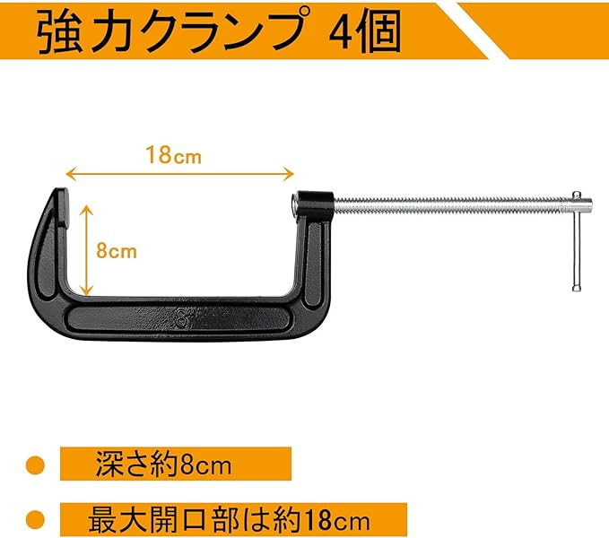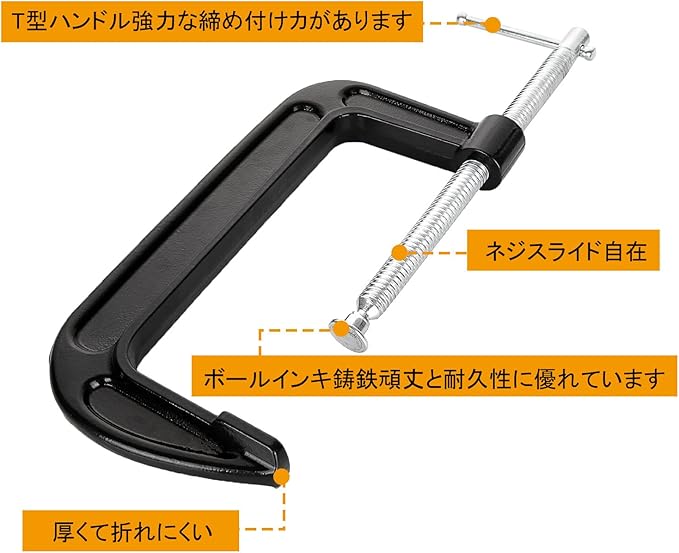 【4個セット】Cクランプ 7インチC型クランプ 木工 深型 固定 最大開口約180mm深さ約80mm G型クランプ 鋳鉄 ボールインキ鋳鉄 万力 DIY工具 木工用 接着 固定 溶接 作業 切削 締付 ブラック