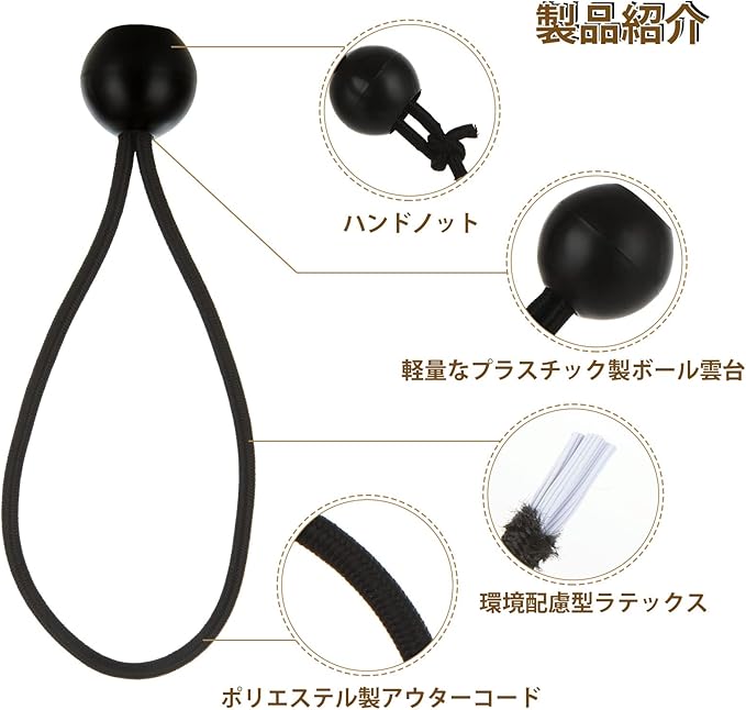 【広く使われている】これらのボールバンジーコードは、屋外でタープ、テント、日よけ、寝袋、天蓋、カーゴネット、屋外プロジェクターなどを固定するのに最適です。また、ホース、ワイヤー、コード、カーテン、タイヘアなどを保持するなどの家庭作業にも最適です。
