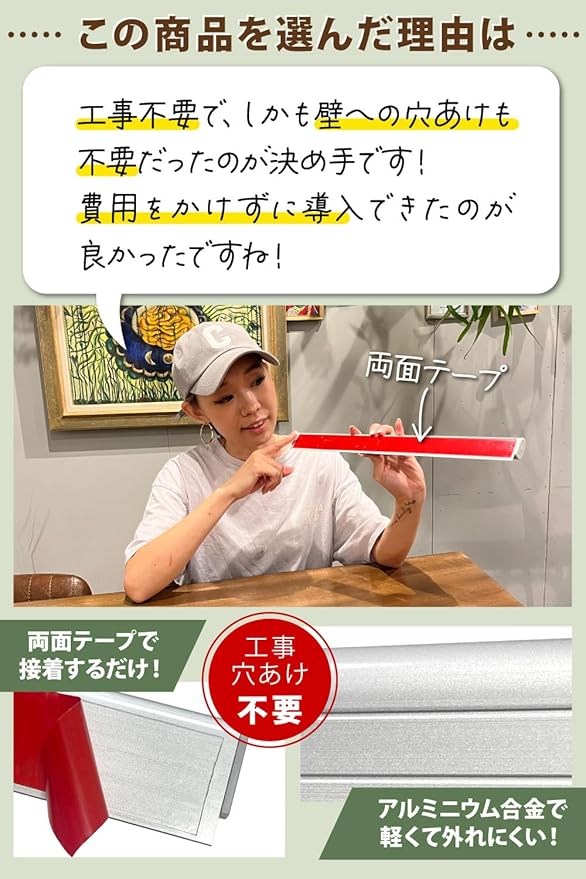 両面テープで接着するモデルなので、工事と穴あけ不要です!