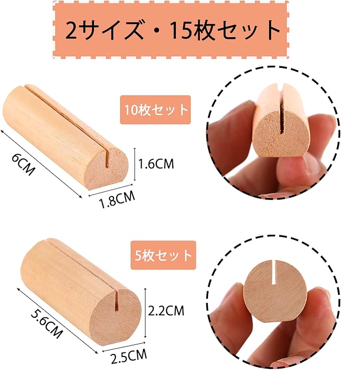 CINECE メモクリップ ホルダー スタンド 木製 12個+12枚名刺 写真 カード 立て 名刺 便箋 文具 事務 シンプル (円柱形 2サイズ)