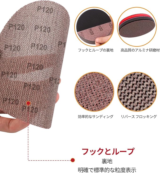【効率的かつ経済的】オープンメッシュ構造の多機能メッシュサンディング材、超アンチクロッギング効果は、効果的にダスト沈着を減らすことができ、従来の研磨剤と比較して、それはより良いサンディング効果、長寿命であり、より便利な交換と高密度フランネルの裏側には、費用対効果の高いソリューションです