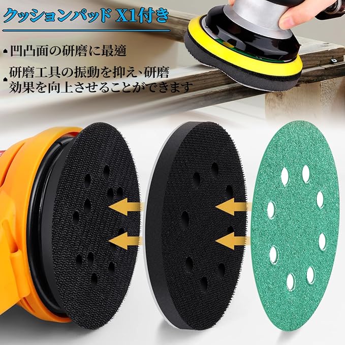 【使いやすいマジックテープ式】ベースは柔軟性の高いポリエステル繊維でできており、サンディング時のひび割れを防ぐ、高密度ナイロンの裏地と相まって、より強力な吸着特性を備えています;集塵用に8つの穴を事前に打ち抜きます 穴の位置も正確でした目詰まりの心配はありません