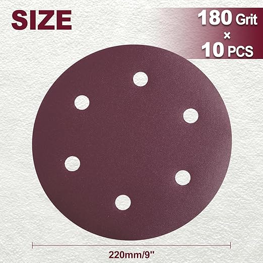 【セット内容】10枚 x #180 220mm 6穴サンディングディスク。