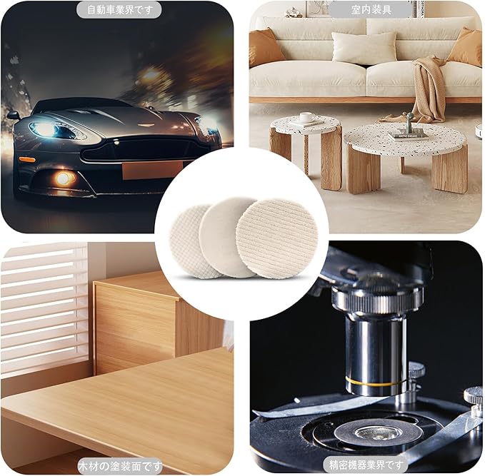 【高品質素材とデザイン】このウールバフは、高品質のプラッシュ生地でできており、中央にはクッション用の厚めのスポンジがあり、他のスポンジやウール・ディスクよりも切れ味がよく、表面の仕上がりもよいです。