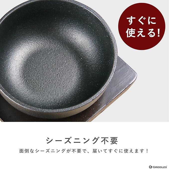 業務用 ビビンバ鍋 17cm ビビンバ器 鋳物鍋 専用木台付き KIPROSTAR(キプロスター) IH対応 直火OK オーブン対応 GRIDDLEX(グリドレックス)
