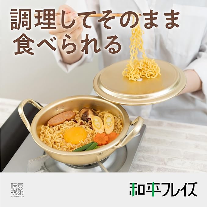 ズボラな方にもぴったり!袋ラーメンをそのまま鍋に入れてちょうどいいサイズ。お好みの具材と合わせて火にかけるだけで、手早く美味しいラーメン鍋を楽しめます。アルミ製なので熱伝導が良く、素早く調理できます。キムチチゲを作るときにもご活用ください。