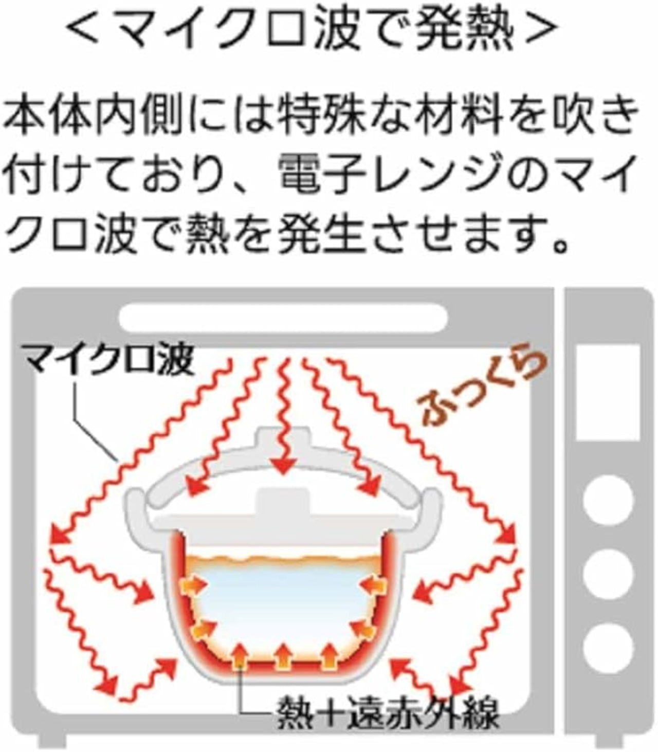 ●内側に電子レンジ用発熱材を使用しており、高温加熱でしっかりご飯が炊ける