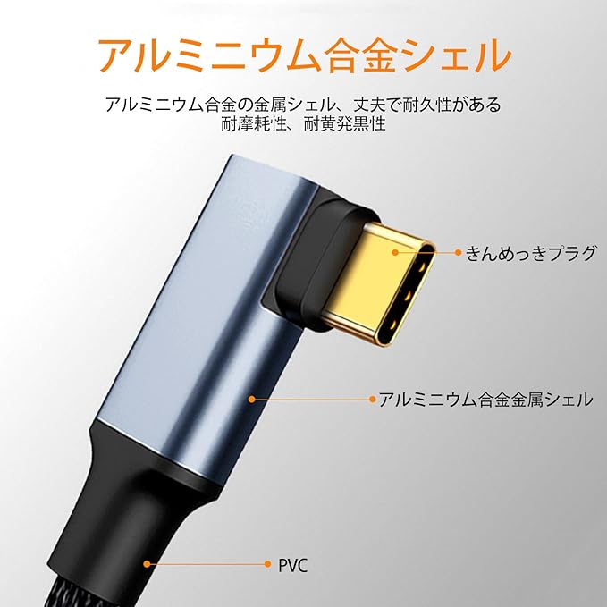 【100W急速充電、L字設計】USB Cケーブルは最大20V/5A (100W)まで安全かつ安定して出力できます。L字のType cケーブル設計、自宅用、職場用、旅行用などいろんな場所で大活躍しています。▲充電器と接続する機器がPD対応している場合に限ります。※ご使用のデバイスにより供給スピードが異なります。