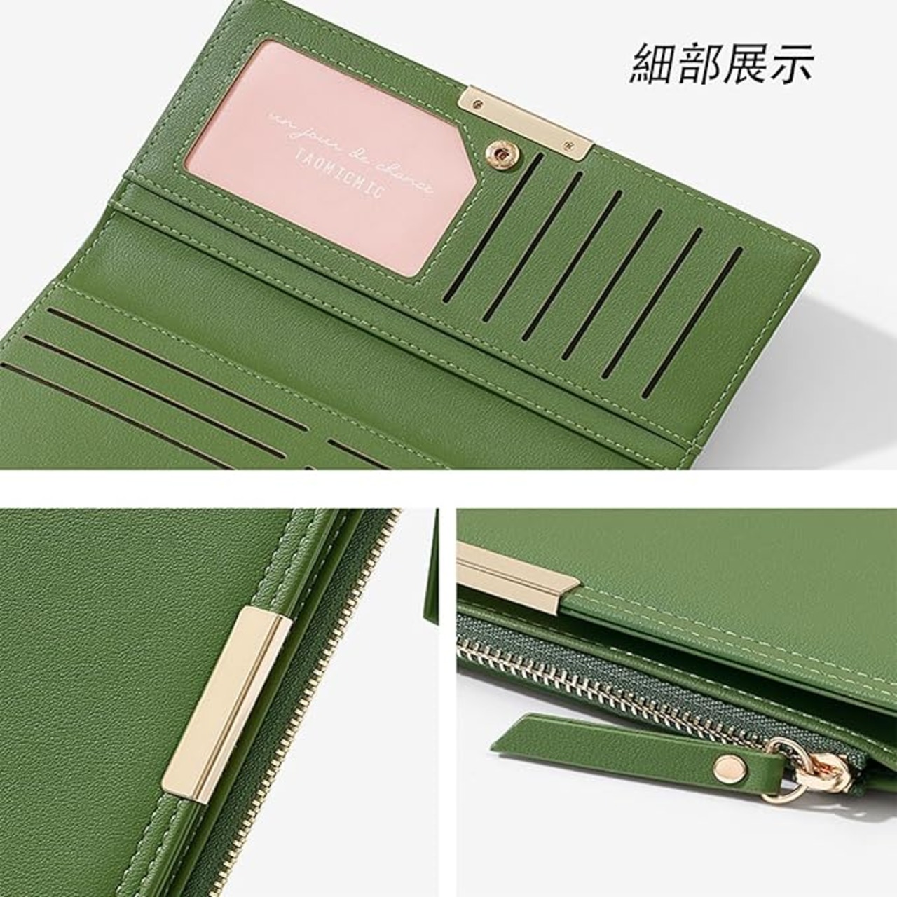 【デザイン】この財布は二つ折りになっており、ポケットとカードの縫い目が両側に配置されている。お札を折らずに綺麗に収納できる長財布は、日々の使い勝手を考え抜かれた設計です。この財布はファスナーで留めて、財布の中身を安全に保つことができます。また、ファスナーは信頼性が高く、長期使用にも耐えられます。