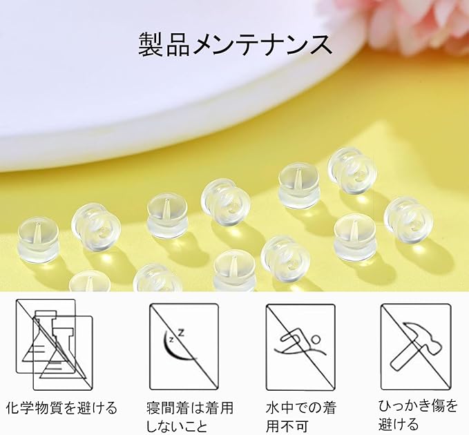 【色と素材】:透明なデザイン、シンプルで寛大な、すべてのスタイルのイヤリングに適しています。 高品質のシリコンを使用し、安全で無毒です。金属アレルギーの方にもお使いいただけます。
