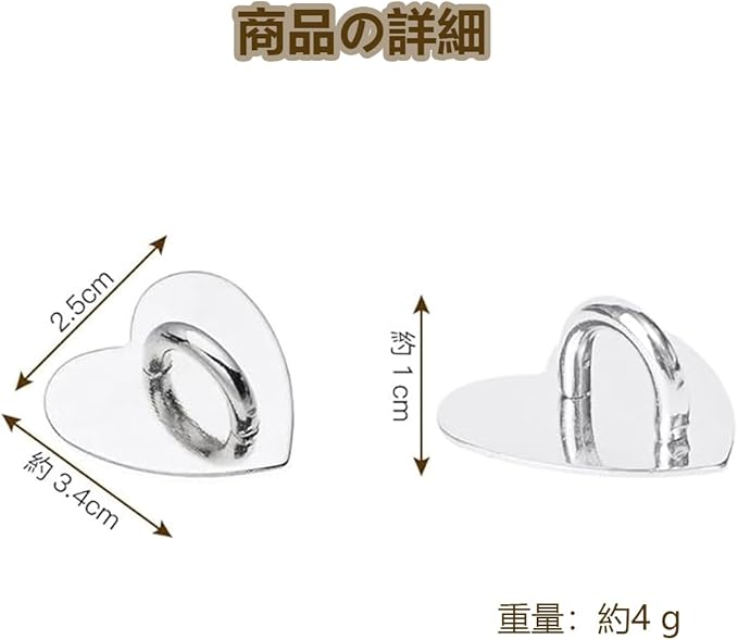 [LUYING] キーリングハンガー きんぞく部品 DIYフック スマホケースを貼り付ける 取り付けが簡単で落下防止 フック付属品スマートフォンケース用 (ハート2個入) (銀)