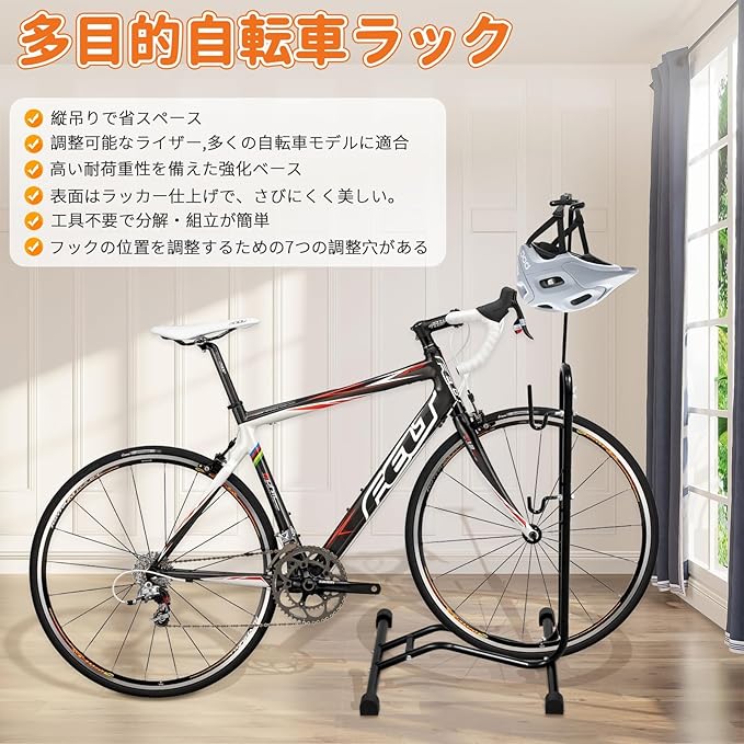 【安定性抜群】この自転車スタンドは高品質なスチール材質を採用し、頑丈で安定性が抜群です。変形にくいなスチールチューブは高い耐荷重を持つ、自転車をしっかりと支え、転落防止でありながら、自転車のタイヤにも傷なし、安心で使えます。