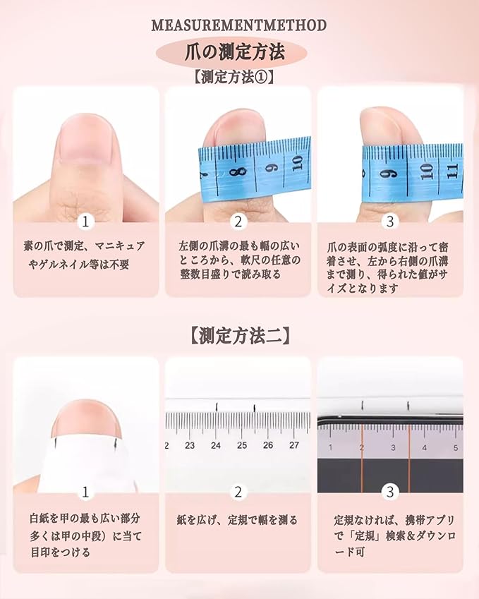 実用性と長持ち:セットには、10種類の異なるサイズのネイルチップが含まれており、4つのサイズから選べるため、さまざまな手の形にぴったりフィットします。高い密着度で、繰り返し使用できるので非常にコストパフォーマンスが高いです。