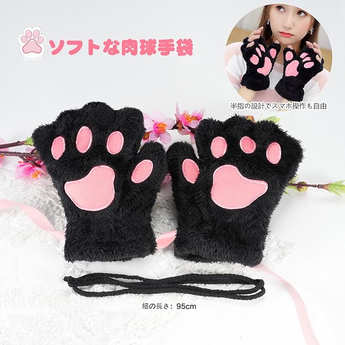 【立体的な肉球手袋】高品質のフェイクファーを使用した肉球手袋は内外がソフトで肌に優しいです。猫の肉球の実感を再現し、とにかく可愛いです。半指の設計で、スマホも自由です