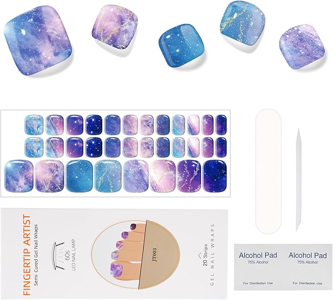 フットネイルシール ジェルネイルシール フット 硬化タイプ 貼るだけ ペディキュアシール ネイルシール 足 足用 ジェル 硬化 初心者 水に強い 長持ち ツール付き パープル系 S03