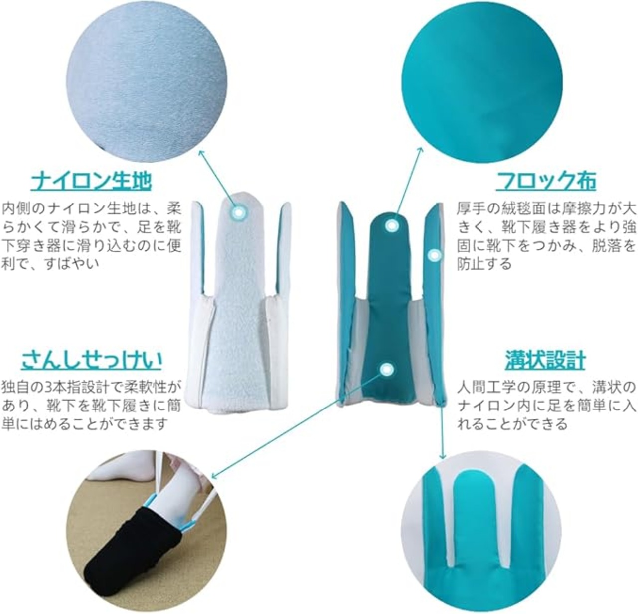 靴下補助具 ソックスエイド自助具 靴下エイド 靴下履き補助具 便利 自立支援 介護用品 妊娠中 高齢者 身体の不自由な方 ストッキング履き補助具 腰を曲げず靴下を一人で履け (1)