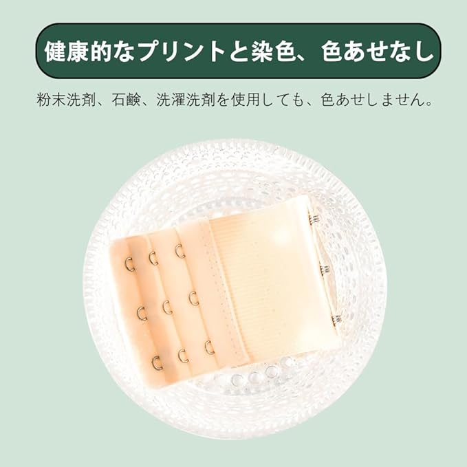 【製品サイズ】縦9.7cm 横5.5cm ホック間隔1.9cmカラー:肌色、黒、白、アプリコット 【製品素材】製品の材質はポリエステル+ステンレスです 弾力性、色落ちしにくいので、洗濯粉、石鹸、洗剤を使っても色落ちしません。 【耐久性】サビに強いステンレス製ホックを採用繰り返し使用に耐える構造 【主な用途】体型変化時のサイズ調整補助妊娠期/産後/授乳期等の体型変動に伴うサイズ調整をサポート体重増減によるブラジャーのフィット感改善に活用可能新しいブラジャーを買うより経済的です。 【使用が簡単】エクステンダーをブラジャーのフックとループに取り付け、現在使用しているブラジャーのフックをエクステンダーのフックとループに取り付けます。ブラジャーの長持ちできることによってお金を節約できます。