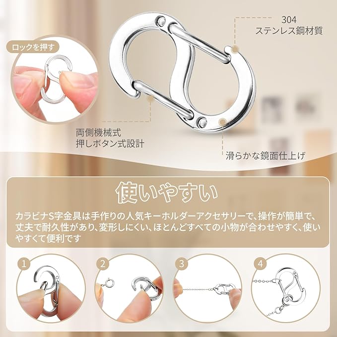 【思いのままのDIYアクセサリーに】 S字フックはネックレス、ブレスレット、キーホルダーなど、さまざまな手作りアクセサリーに活用できます。シンプルでありながら機能的なデザインで、オリジナル作品のアクセントに最適です。